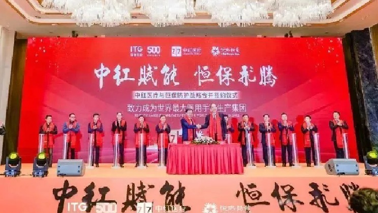 2月10日上午,中红普林医疗用品股份有限公司(以下简称“中红医疗”)与桂林恒保健康防护有限公司(以下简称“恒保防护”)在桂林举行战略合并签约仪式。