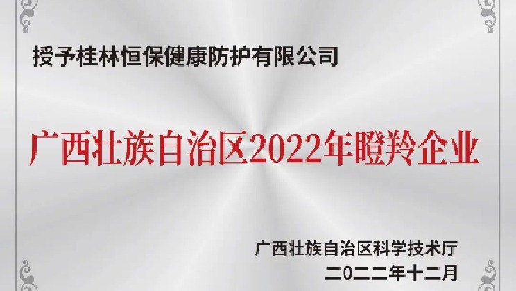 恒保防护荣膺广西壮族自治区2022年度瞪羚企业