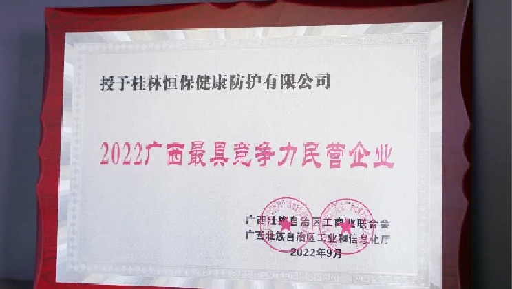 喜讯:恒保防护入围“2022年广西最具竞争力民营企业”